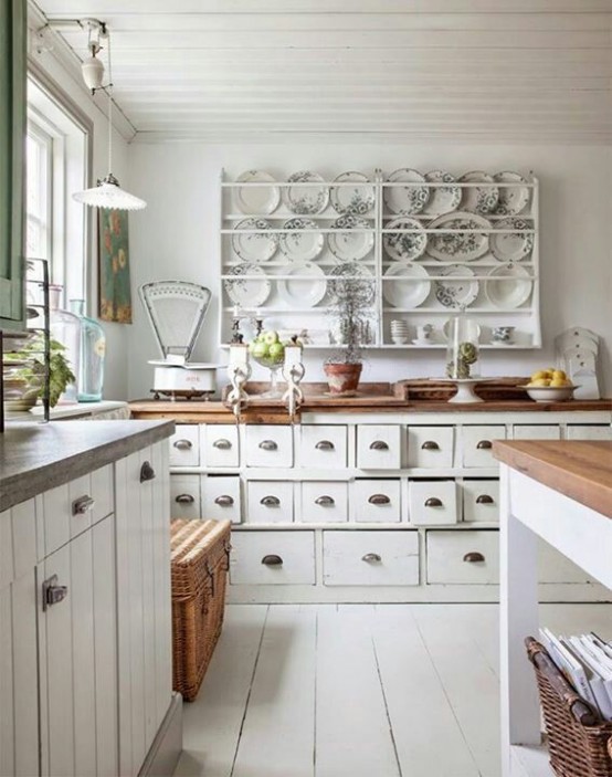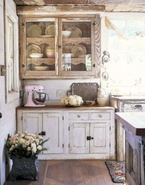 affascinante cucina shabby chic con un sacco di dettagli