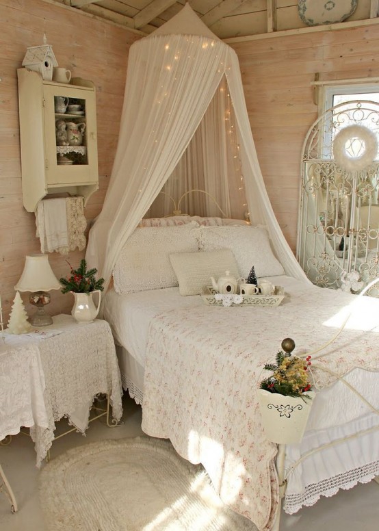 bel letto con un look shabby chic
