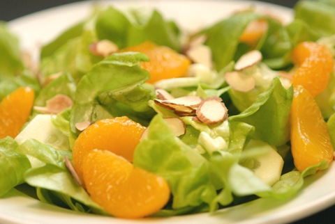 Peler et laver la laitue, alors cassez-le avec vos mains. Peler les oranges tout en retirant la membrane qui recouvre les segments.