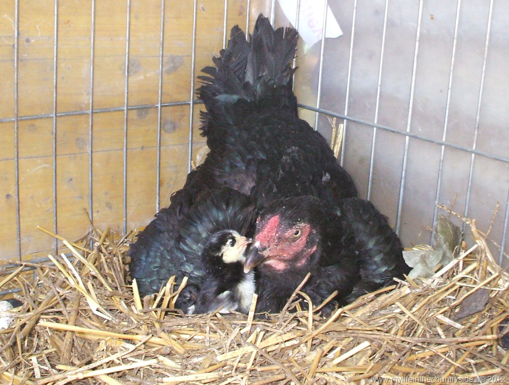 A casa poi, scopriamo tutte le caratteristiche di questa razza, che è una razza da esposizione. Proprio il nostro destino: esposizioni! Tra cani e galli adesso… la cosa particolare è che sono docilissimi. Entrambi gallo e gallina vengono dietro come cagnolini, beccano la finestra dietro casa perché vogliono entrare, si fanno pure carezzare, si affezionano. Il venditore lo aveva detto, visto che io avevo paura per il bambino (so che i galli sono pericolosi, a me da piccola hanno beccato quasi vicino agli occhi, quando sono andata a raccogliere le uova). Invece questa razza è proprio, oltre che bella, adattissima alla famiglia, sono da compagnia e ornamentali. Il fattore negativo è che la gallina depone uova soltanto durante il periodo della riproduzione, poi le cova e nascono i pulcini. Quindi non sono da uova. A noi ne ha fatte tantissime questa primavera, ma le abbiamo raccolte e mangiate. Alla fine ne abbiamo lasciate 4 che ha covato, e sono nati solo due pulcini.
