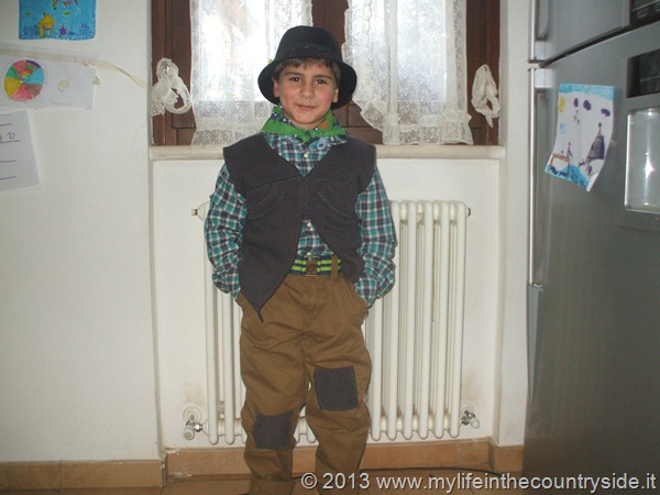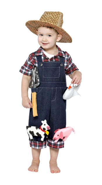 Quello adatto sarebbe da contadino, oppure si possono usare cappelli da cow boy e stivali. Anche la madre può ricevere gli ospiti così. Mio figlio aveva il vestito che si è fatto per carnevale, anche se poi non ha voluto indossarlo per il suo compleanno. Lui è fissato con i contadini e gli animali da cortile.