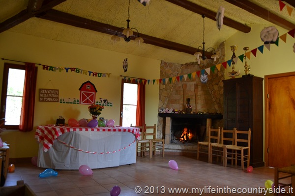 Il posto ideale dove organizzare una festa del genere è in campagna, un agriturismo, un casale, un circolo, meglio ancora se circondato da stalle degli animali e pollai. Noi siamo fortunati perché mio padre ha un circolo ippico dove ha anche animali da cortile oltre ai cavalli. Ci sono asini, galli e galline razzolanti per il cortile adiacente, anatre, oche e pecore. Abbiamo organizzato il tutto, quindi, nel Club House, stanza rustica riservata al ristoro dei cavalieri, il posto ideale per una festa simile. Se non si hanno possibilità, si può affittare un posto simile, ce ne sono tanti e in tutte le regioni, altrimenti andrà bene una semplice casa di campagna di qualche amico.