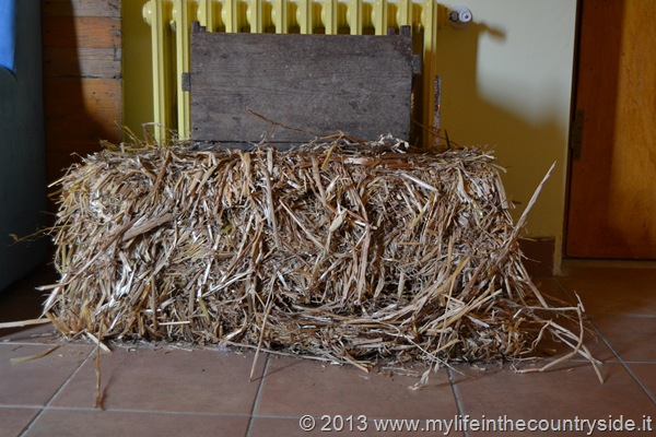 In ultimo ho preso una balla di paglia e l’ho posizionata all’entrata insieme ad una cassetta di legno grezza: è immancabile!